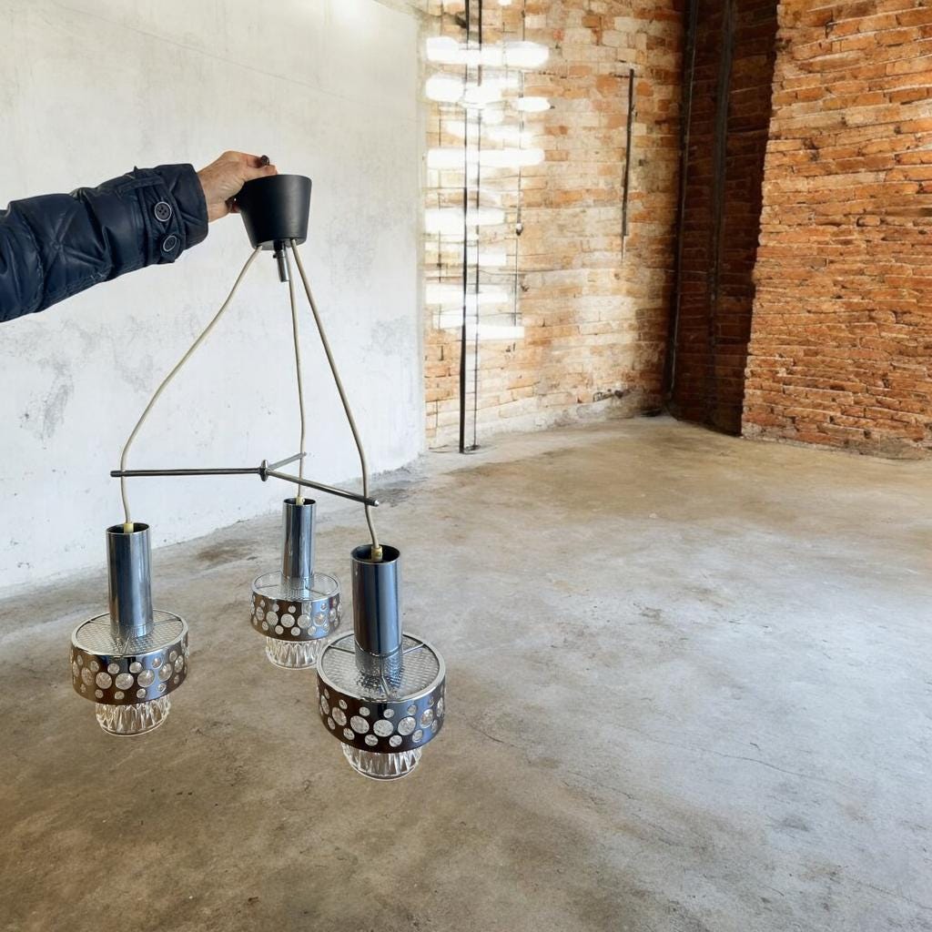 Vintage Chrom 70er Jahre Pendelleuchte/Kronleuchter Massiv